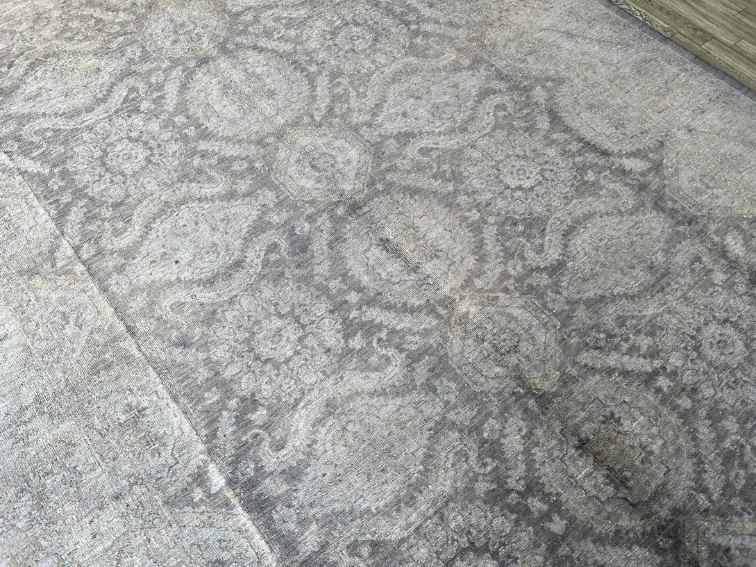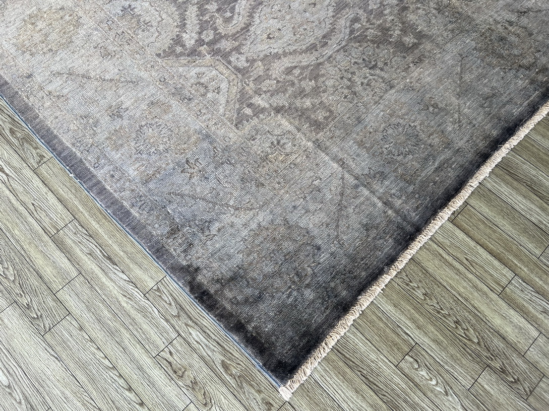 Bring understated elegance and a sense of calm to your space with this hand-knotted modern rug. Crafted with fine wool, this piece features a soft, distressed finish and an intricate all-over medallion pattern subtly woven into a smoky gradient background. Its muted tones and vintage-inspired design make it a perfect choice for contemporary, minimalist, or transitional interiors.