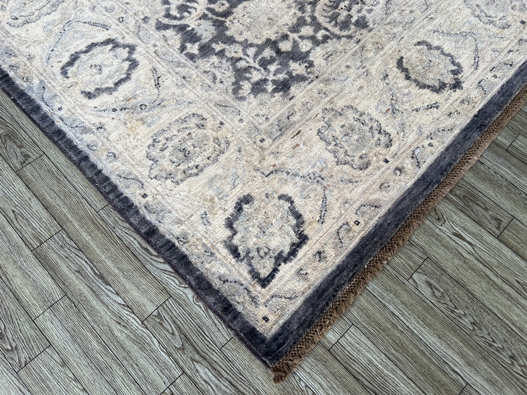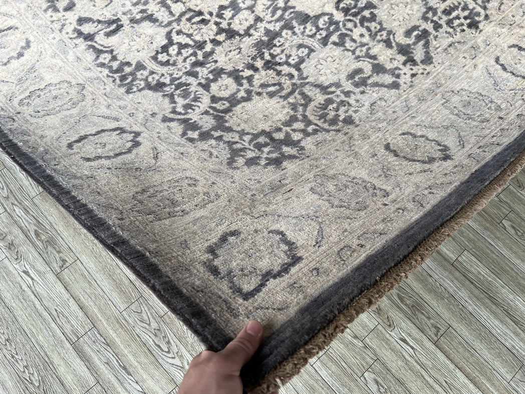 This handwoven wool rug brings timeless elegance and a vintage feel to your space, blending rich contrast with classical floral motifs. Its faded finish and neutral tones make it perfect for both traditional and modern interiors seeking a touch of heritage.