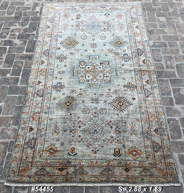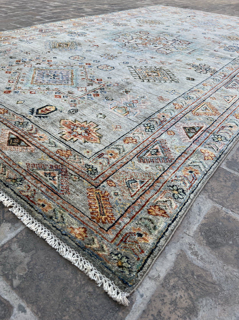 Handmade Vintage-Inspired Rug – Wool & Silk Blend (2.88m x 1.69m) | Soft Pastel Tribal & Medallion Design